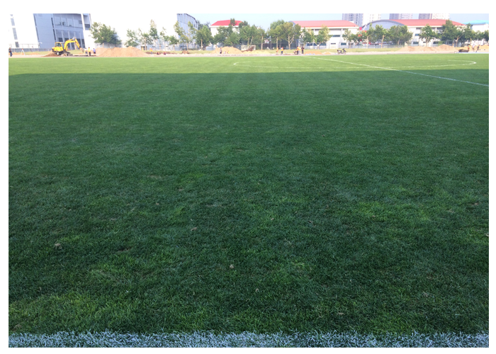兩個(gè)球場(chǎng)對(duì)比明顯:其中一個(gè)球場(chǎng)使用優(yōu)繪三次,幾乎沒(méi)有病斑;另一個(gè)球場(chǎng)使用優(yōu)繪一次,正在發(fā)生腐霉病和夏季斑病,病斑較為明顯。