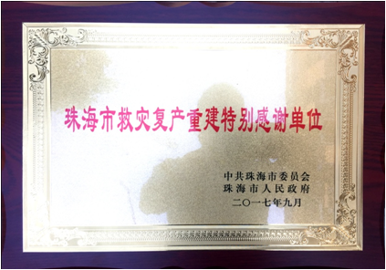 9月,中共珠海市委市人民政府授予綠友集團“珠海市救災(zāi)重建特別感謝單位”榮譽稱號。