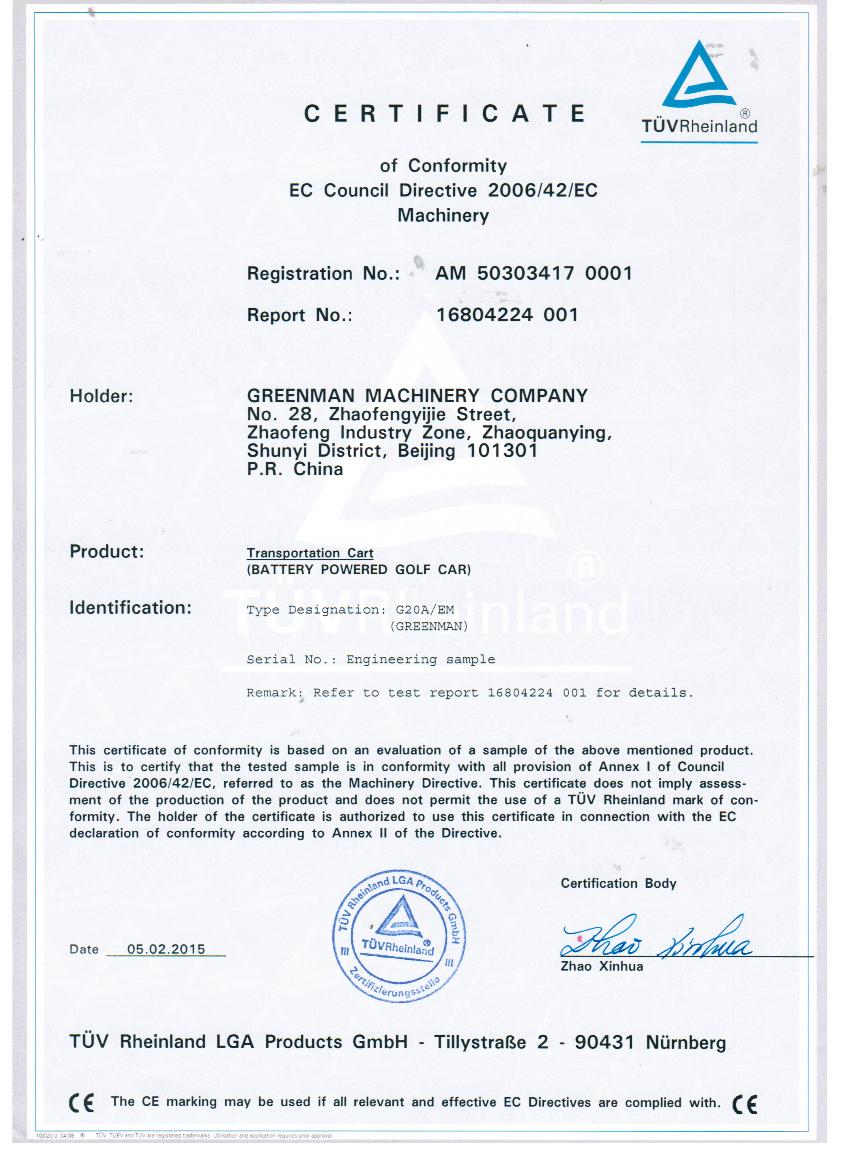 綠友集團(tuán)自主研發(fā)的GREENMAN兩座電瓶車golf car通過了CE認(rèn)證。