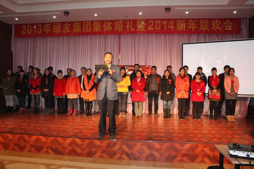 12月29日,“2013年綠友集團集體婚禮暨2014年元旦聯(lián)歡會”在總部所在地附近的德濟緣酒店舉辦,總部人員和北京綠友園林、北京工廠的全體人員參加了活動;在李敏總裁的關(guān)心下,會務(wù)組人員還特別邀請了8名退休員工前來參加活動。