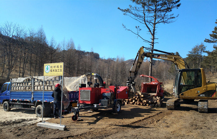 綠友集團(tuán)總部森防裝備事業(yè)部、售后服務(wù)部、撫順綠友園林機(jī)械有限公司協(xié)同在撫順市大伙房實(shí)驗(yàn)林場現(xiàn)場給參會(huì)人員講解、演示了GREENMAN CM15R病疫木粉碎機(jī)、CH25C病疫木粉碎機(jī)在山場就地粉碎處理感染松材線蟲病疫木方案,與會(huì)嘉賓紛紛記錄、拍照,索取資料,積極響應(yīng)國家關(guān)于松材線蟲病疫木山場就地粉碎處理的相關(guān)政策。