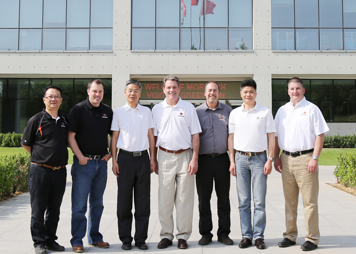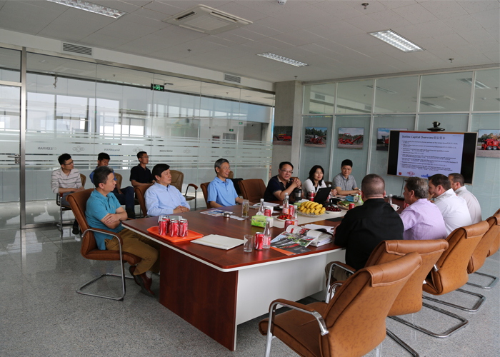 5月8-9日的綠友園,碧空如洗,清風(fēng)獵獵。綠友集團(tuán)迎來(lái)了美國(guó)木霸克公司首席執(zhí)行官戴夫?赫爾、高級(jí)副總裁約翰?福特、工業(yè)設(shè)備國(guó)際部經(jīng)理柯?tīng)柼?麥克穆倫、工業(yè)設(shè)備銷(xiāo)售總監(jiān)邁克爾?斯坦頓一行四人的到訪。