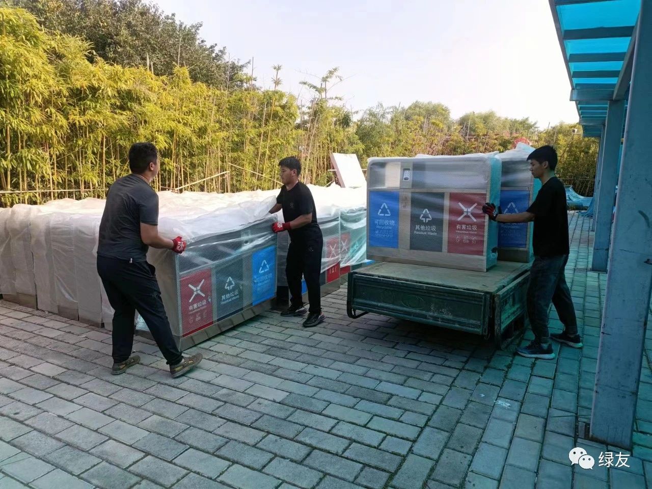 由于物流車體太長,物流車只能停在路口,同事們一件一件地從物流大車轉(zhuǎn)到貨運小車,然后送往客戶使用地。