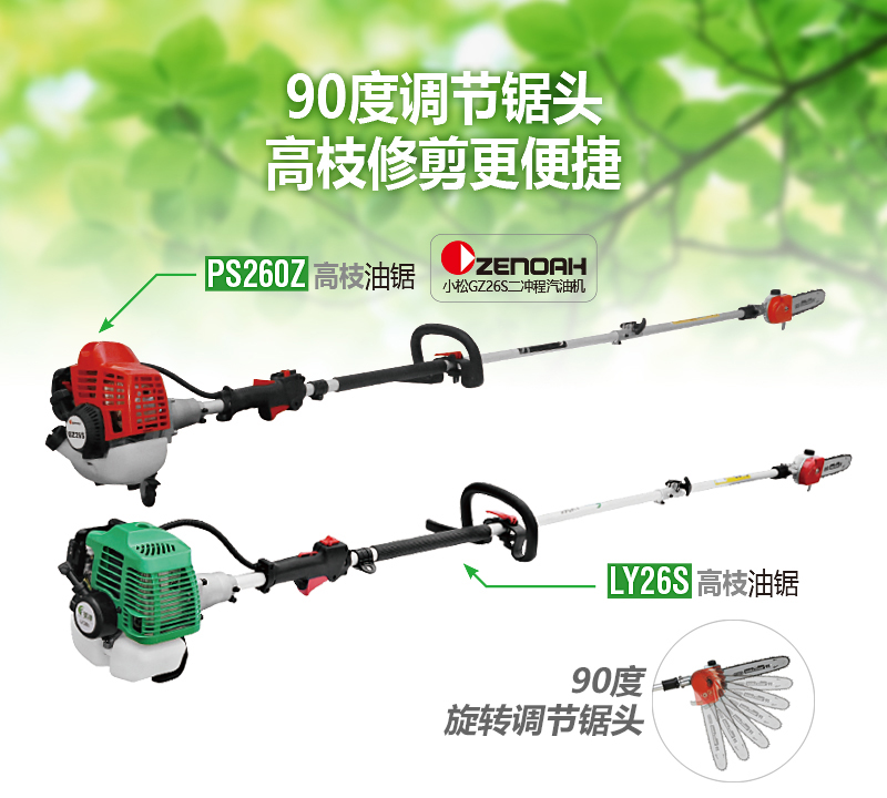 美神高枝油鋸,90度可旋轉(zhuǎn)刀頭,奧里根導(dǎo)板和鏈條;整機(jī)長度3米,適用于高空樹枝的修伐。