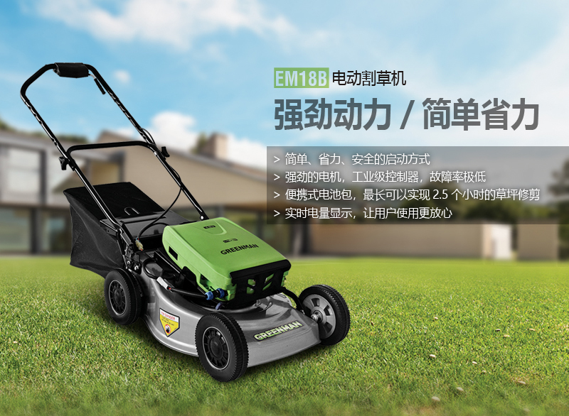 18寸電動(dòng)草坪修剪機(jī),實(shí)現(xiàn)了草坪修剪的電動(dòng)化,具有噪音低,無污染, 操作簡單,適用于社區(qū)、學(xué)校、單位等場所使用。
