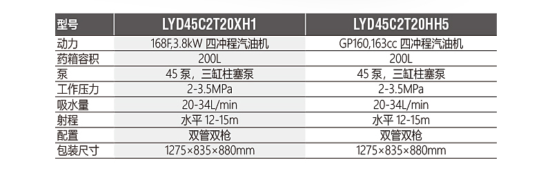 高密度聚乙烯防腐蝕藥箱,藥箱上配有刻度藥量顯示,及時(shí)掌握藥液噴灑情況;靈活可轉(zhuǎn)動(dòng)的前扶手設(shè)計(jì),轉(zhuǎn)向靈活;單叉雙前輪設(shè)計(jì),前輪直徑255mm;雙管雙槍?zhuān)焊邏簶專(zhuān)F化槍各1套, 高壓水管:D8×30m ,D13×20m
