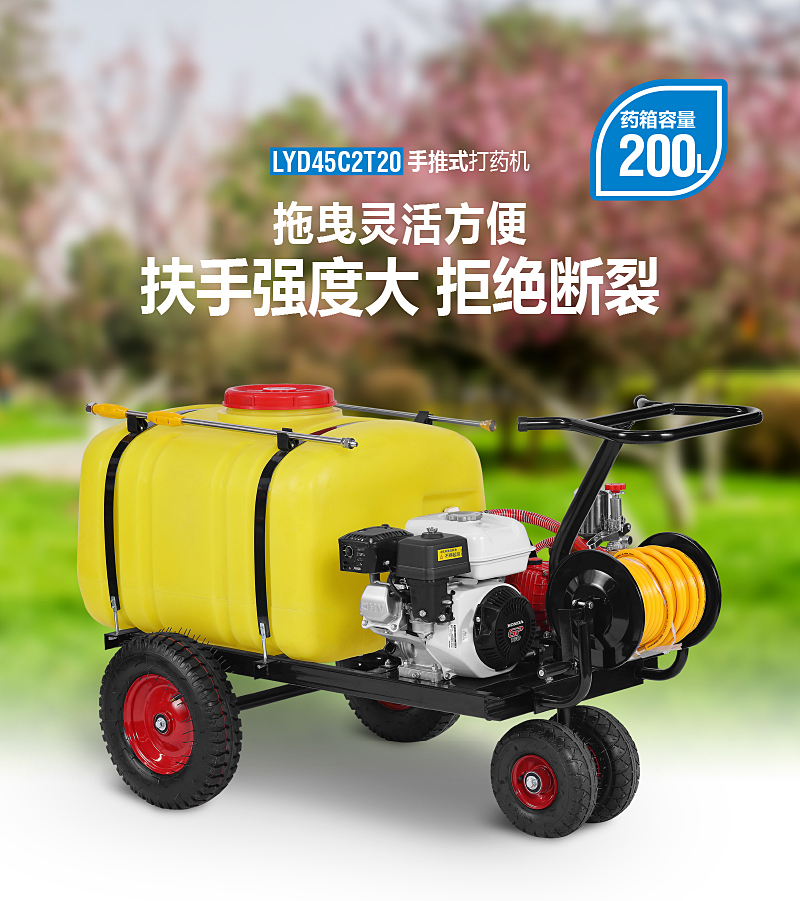 200L手推機(jī)動(dòng)噴霧機(jī)是一款結(jié)構(gòu)緊湊,靈活實(shí)用的園林植保作業(yè)機(jī)具。