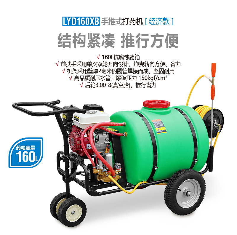 160L小型手推機(jī)動噴霧機(jī),30米高壓軟管,可調(diào)節(jié)霧化噴槍,是園林植保、農(nóng)業(yè)花卉種植、公共場所衛(wèi)生消殺等作業(yè)的常用機(jī)具。
