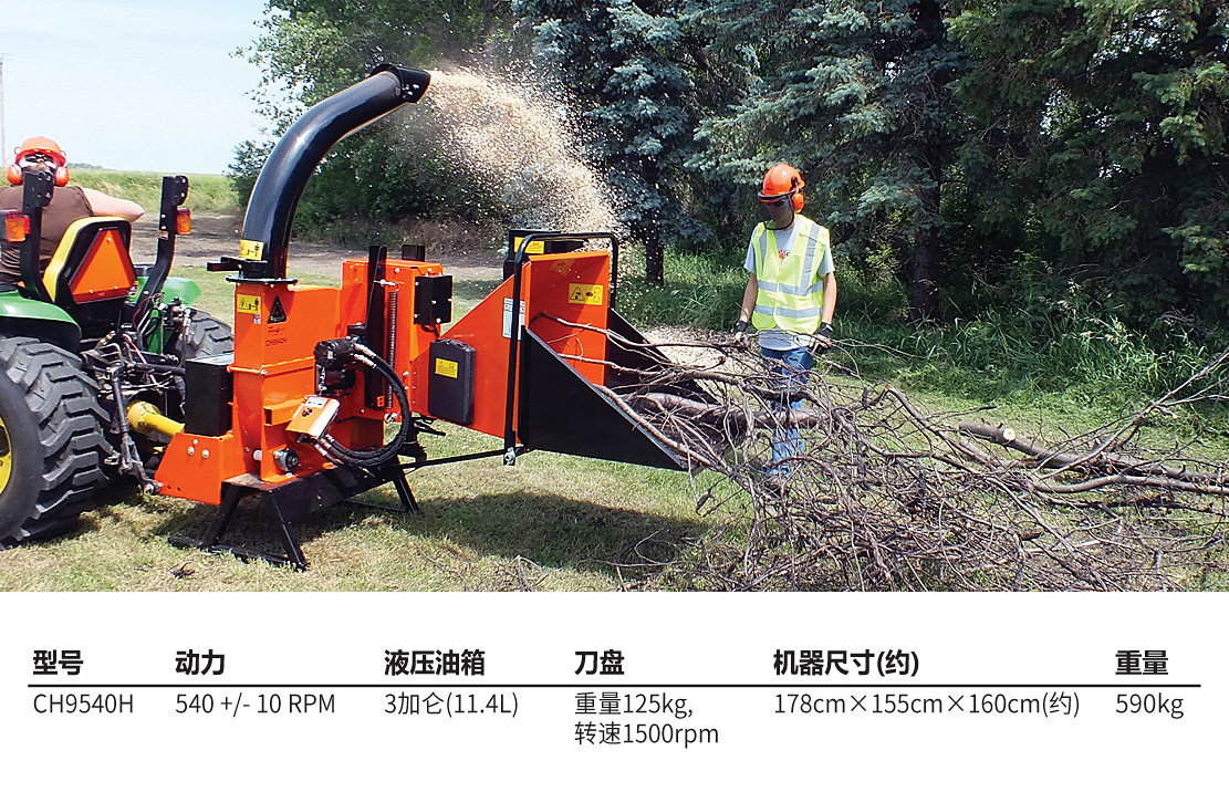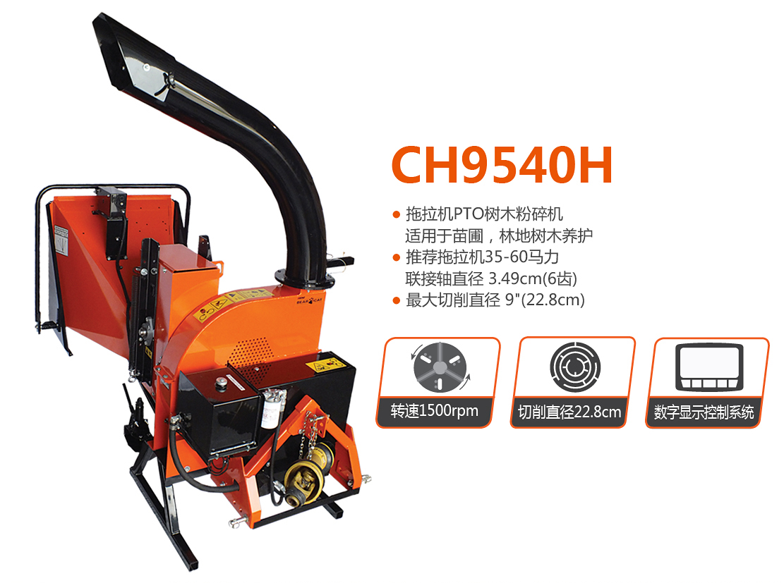 老熊(BEARCAT)品牌樹枝粉碎機(jī),采用PTO驅(qū)動(dòng),適合苗圃等場所使用。推薦拖拉機(jī)35-60馬力,聯(lián)接軸直徑3.49cm(6齒);最大切削直徑9"(23cm)。