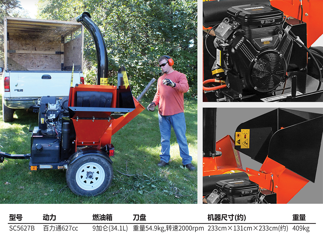 老熊(BEARCAT)品牌樹枝粉碎機(jī),配置斯巴魯720cc發(fā)動(dòng)機(jī)。擁有切削、粉碎兩個(gè)功能,最大可切削5英寸(12.7cm)枝椏,粉碎3/4英寸(2cm)枝椏。4片切削刀和36片粉碎刀保證了高效的處理效率。