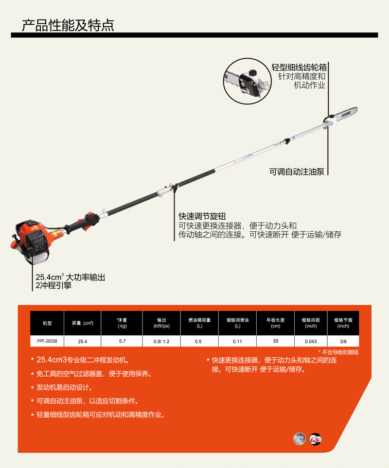 高枝油鋸廣泛應(yīng)用于森林采伐、造材、以及鐵路枕木鋸截等作業(yè)。愛可的高枝鋸易啟動(dòng),動(dòng)力強(qiáng)勁而穩(wěn)定,讓您在修剪濃密的高枝時(shí)輕松自如。